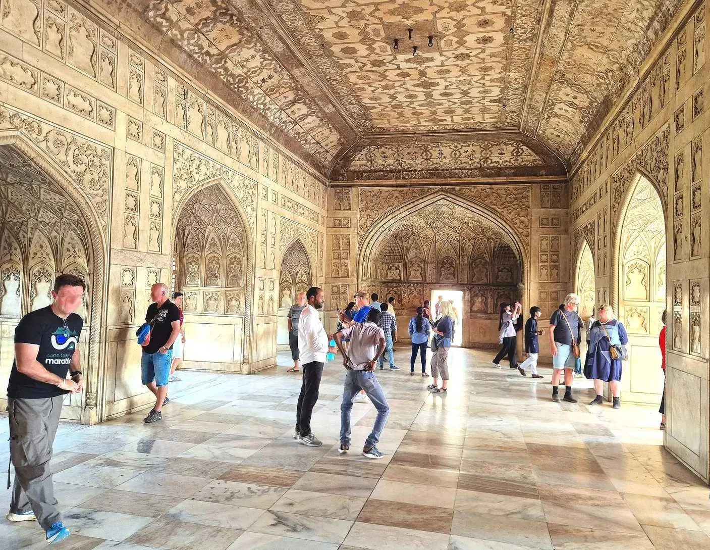 Apologies for the blurred faces, but Agra Fort is a very popular tourist destination and it was difficult at times to get good photos without some collateral photo-bombing. This was the best I could find from inside the Amar Singh Gate, an area reserved for use only by the Mughal emperor.