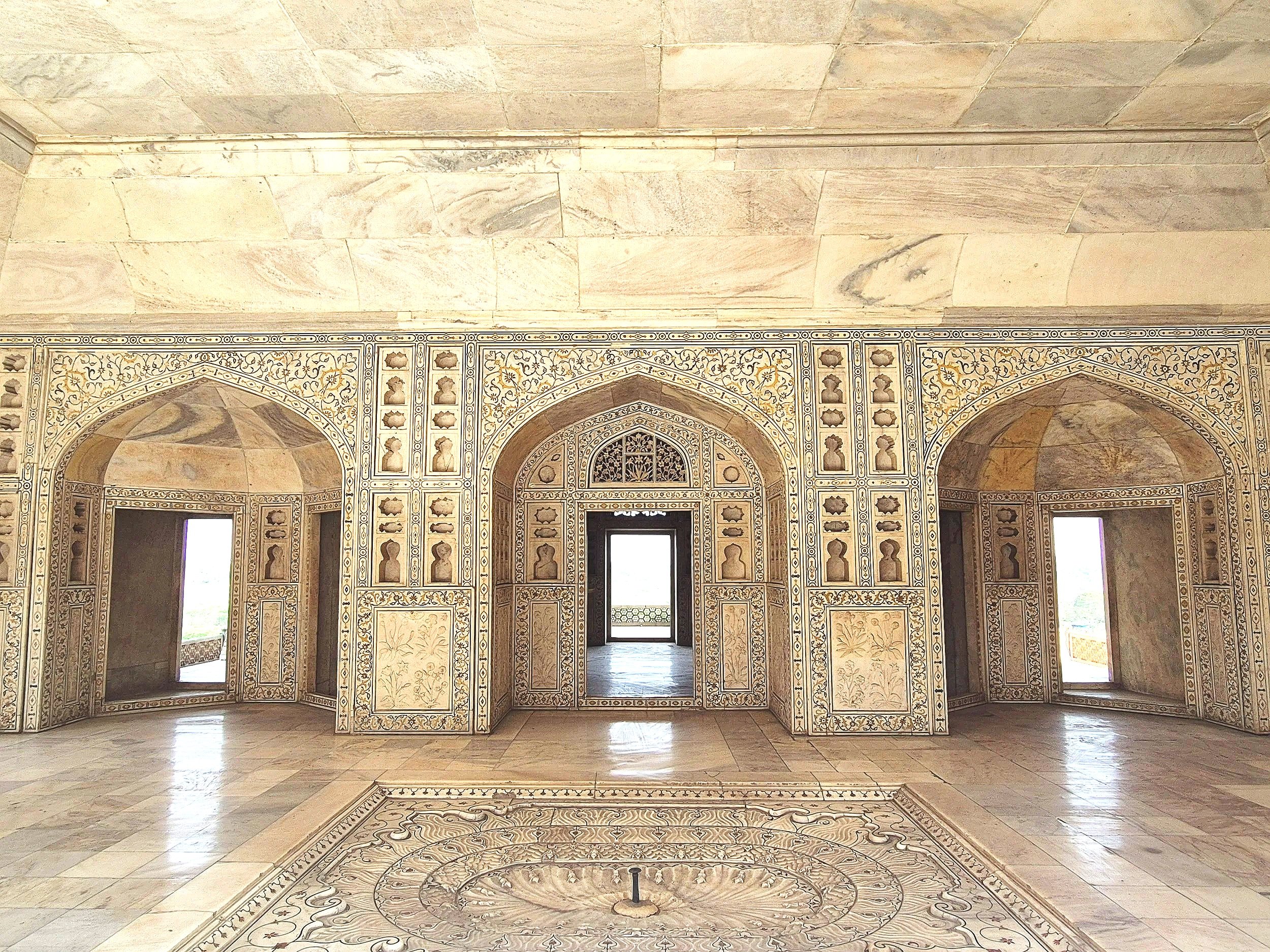 Inside the Khas Mahal, or private palace, the marble work, highlighted by inlaid semi-precious stones created an opulent escape from the realities of ruling an empire for multiple Mughal emperors. Shah Jahan reportedly spent much of his time while under house arrest here.