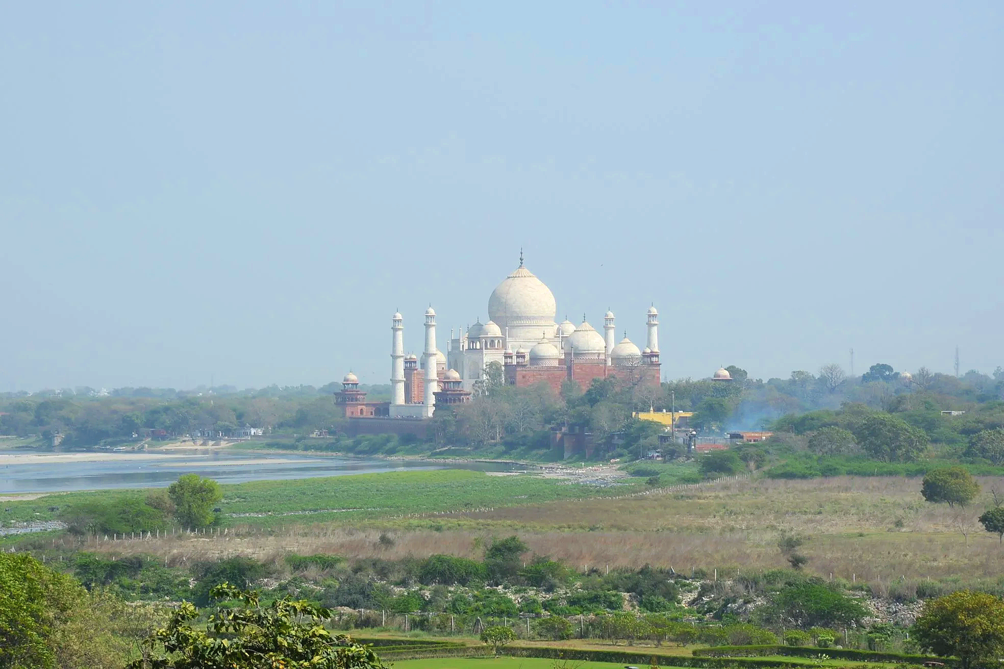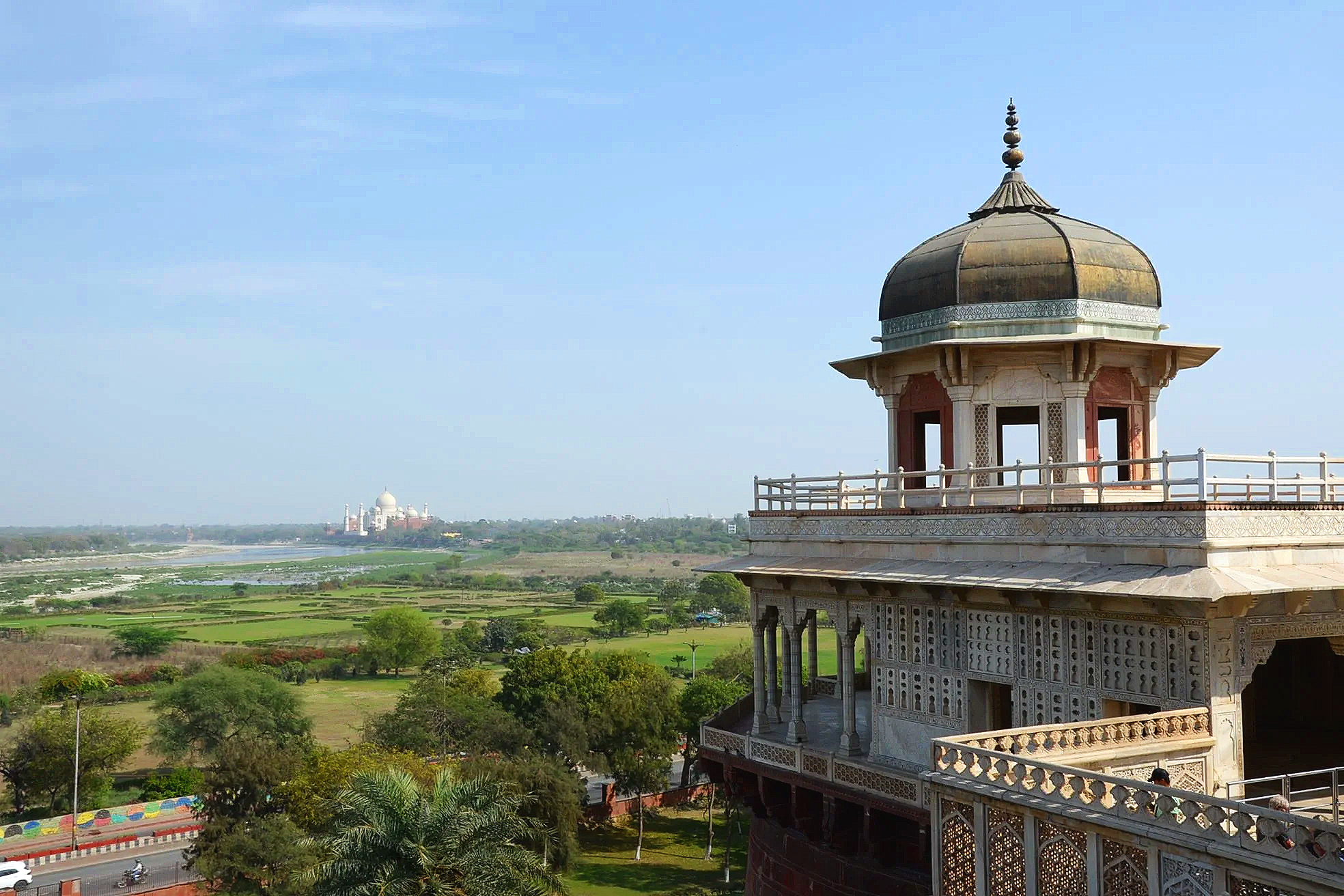Looking out over the Khas Mahal toward the Taj Mahal.