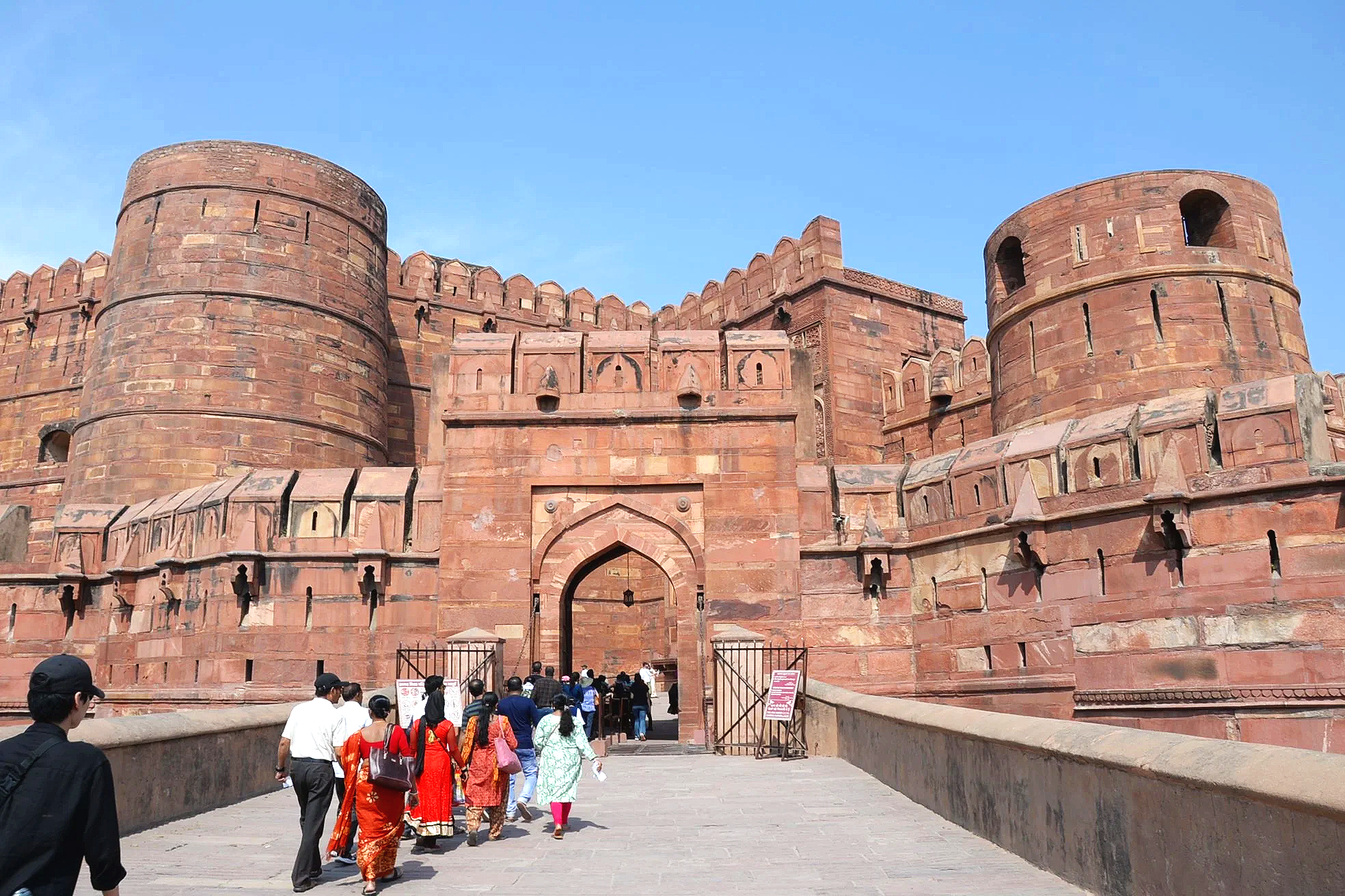 The main gate to Agra Fort can only be accessed by crossing the deep moat. The facade of this fortress is, if nothing else, imposing!