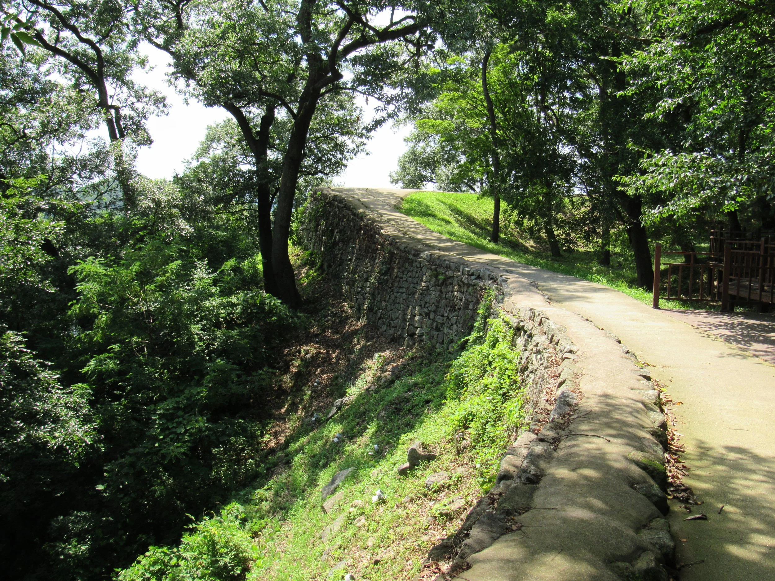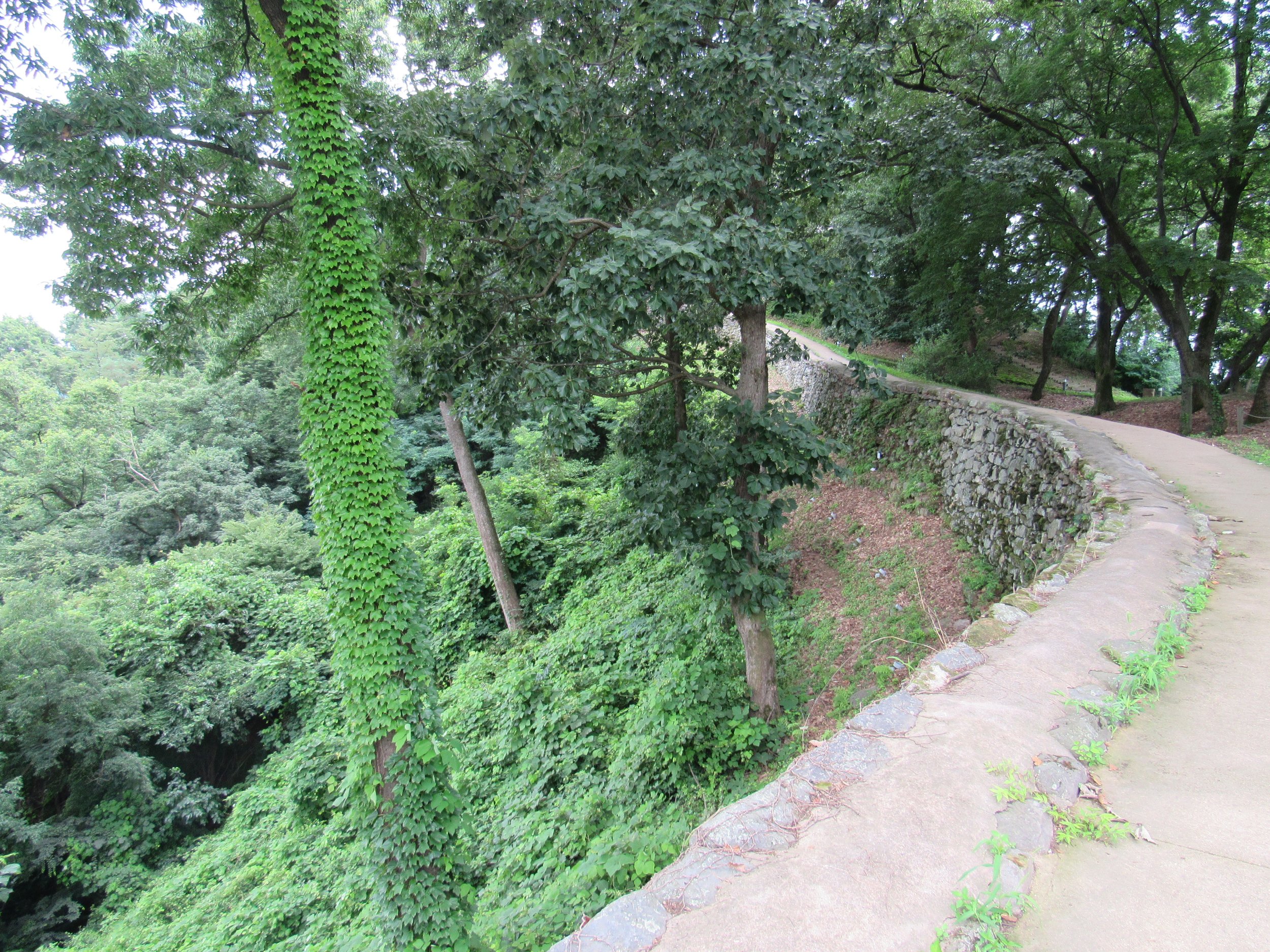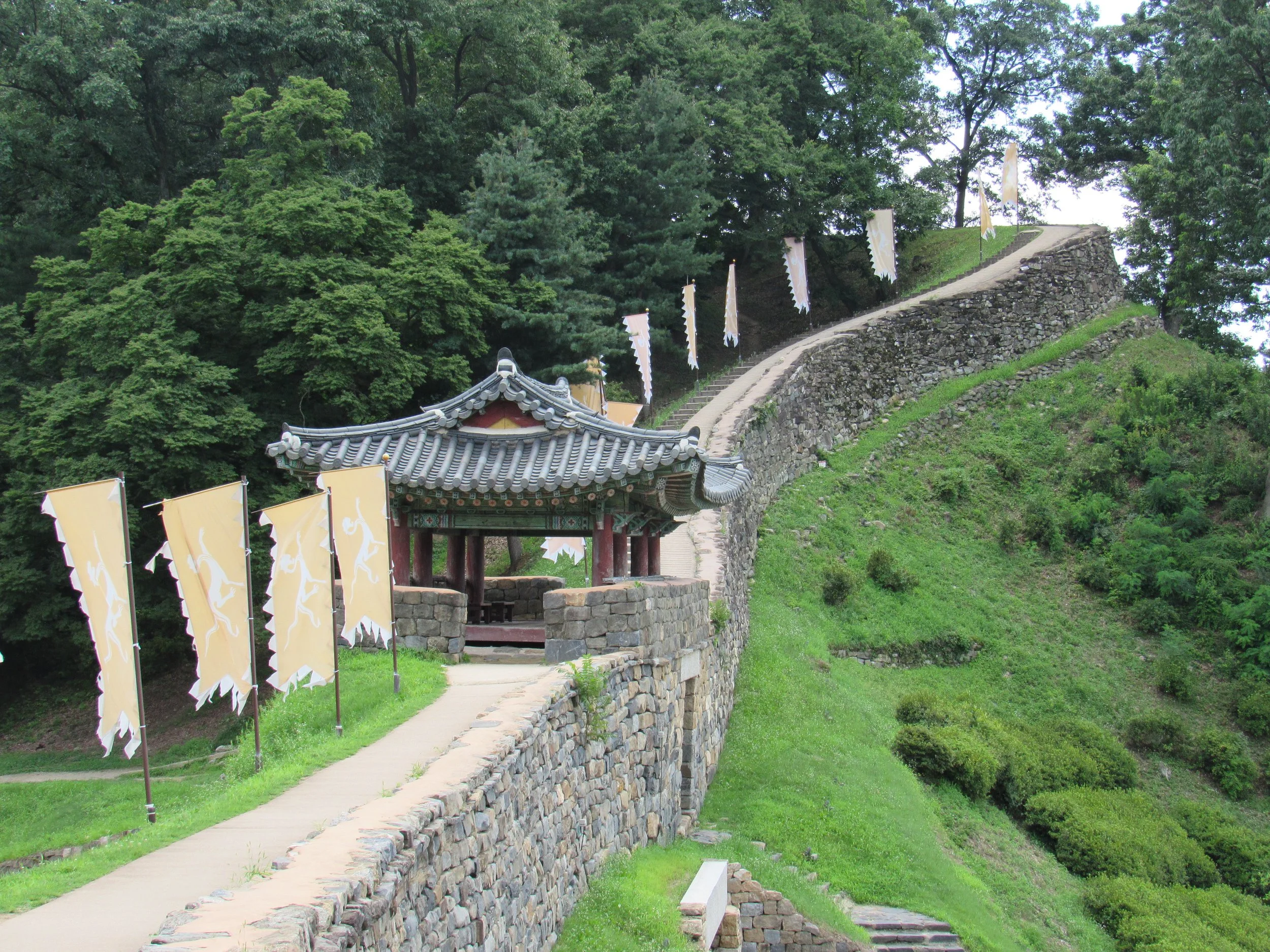 This picture, leading down to Yeongdongru Gate, gives a good idea of what rammed earth walls—absent their masonry outer layer—looked like. In the 5th Century A.D., the majority of Ungjinseong’s walls would have appeared like this. You will find similar walls in nearly all Korean Three Kingdom Era fortifications, including at Haengjusanseong just west of Seoul.