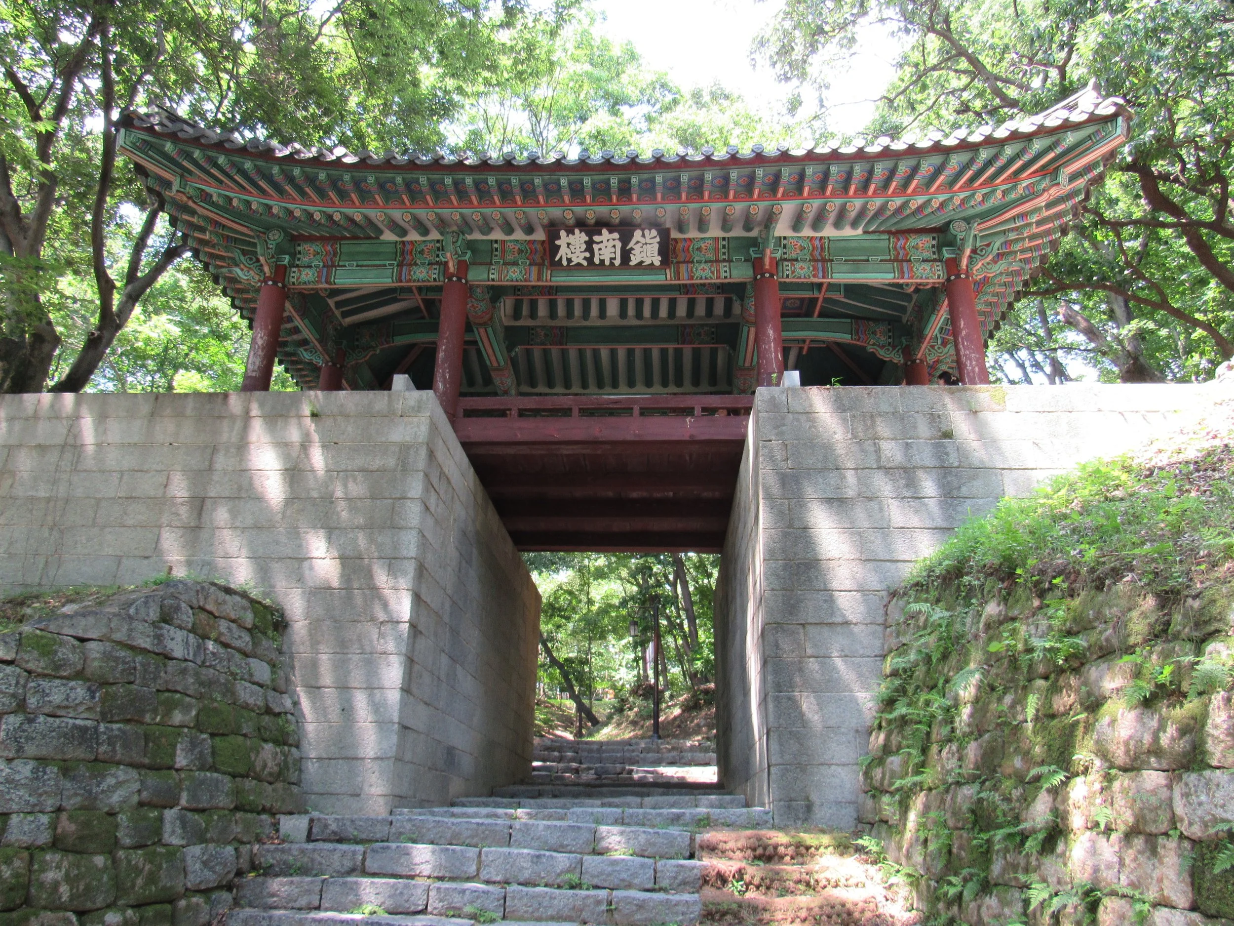 Jinnamru Gate is different than the others. Built, or perhaps just modified, in the Joseon Era, it seems more ceremonial than practical. The wooden structure laying directly across an opening in finely cut stone struck me as odd. Then, when you take a step back you notice the ornate approach leading up to the gate, and just as impressively sculpted areas just inside and understand that this gate was built to impress. Can’t say that I’ve ever seen anything quite like it in Korea!