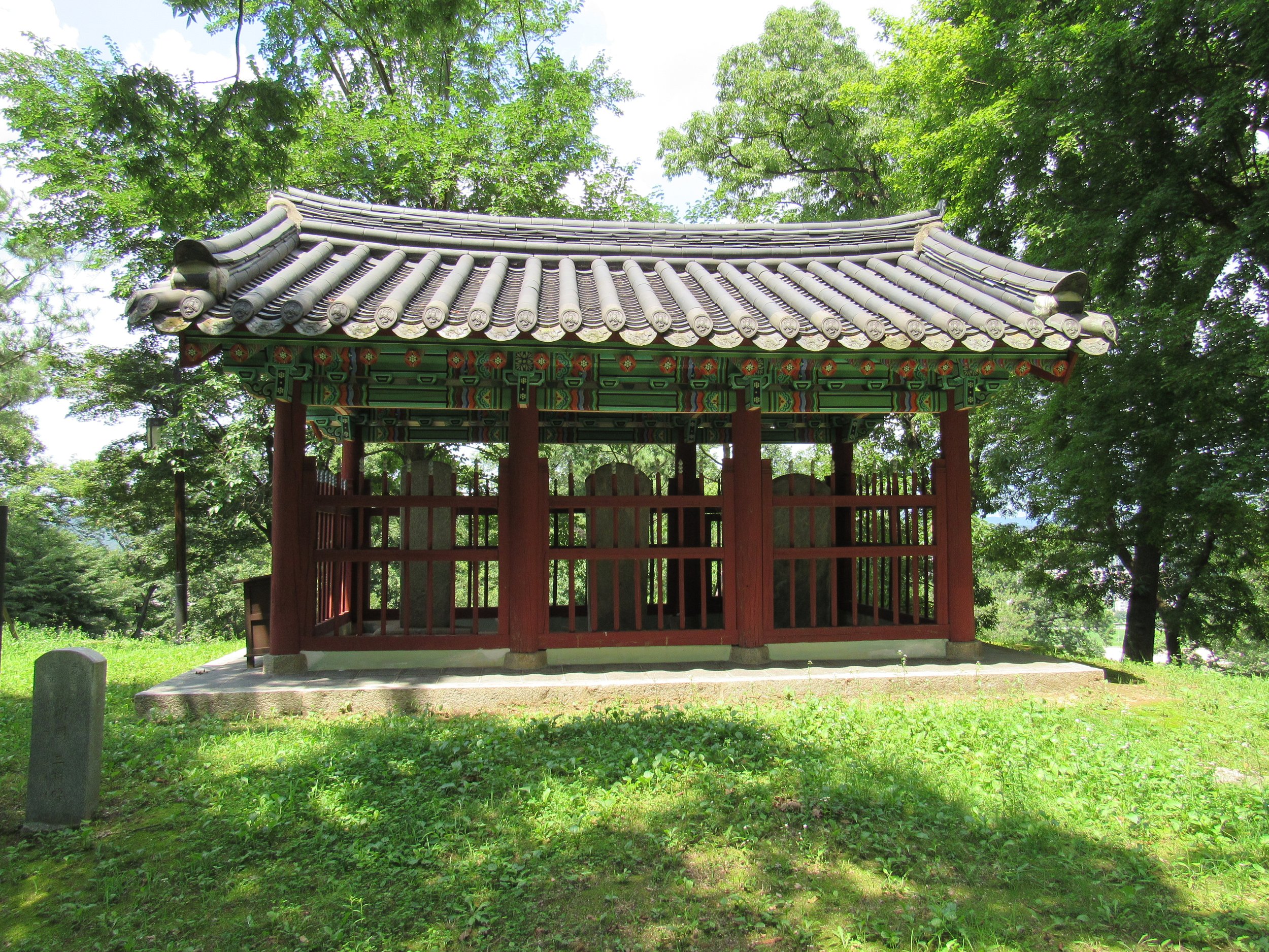 A very interesting site within Gongsanseong. These stele memorialize the actions of three Ming Dynasty officials who contributed to the defense of Joseon Korea during the Imjin War 1592-98. The inscriptions made explicit mention of the Japanese invasion and the actions of Yi Gong, Imje, and Nambangwi in Korea’s defense. During the Japanese colonial period, these stele were defaced by Imperial troops, scratching out all mention of Japan.