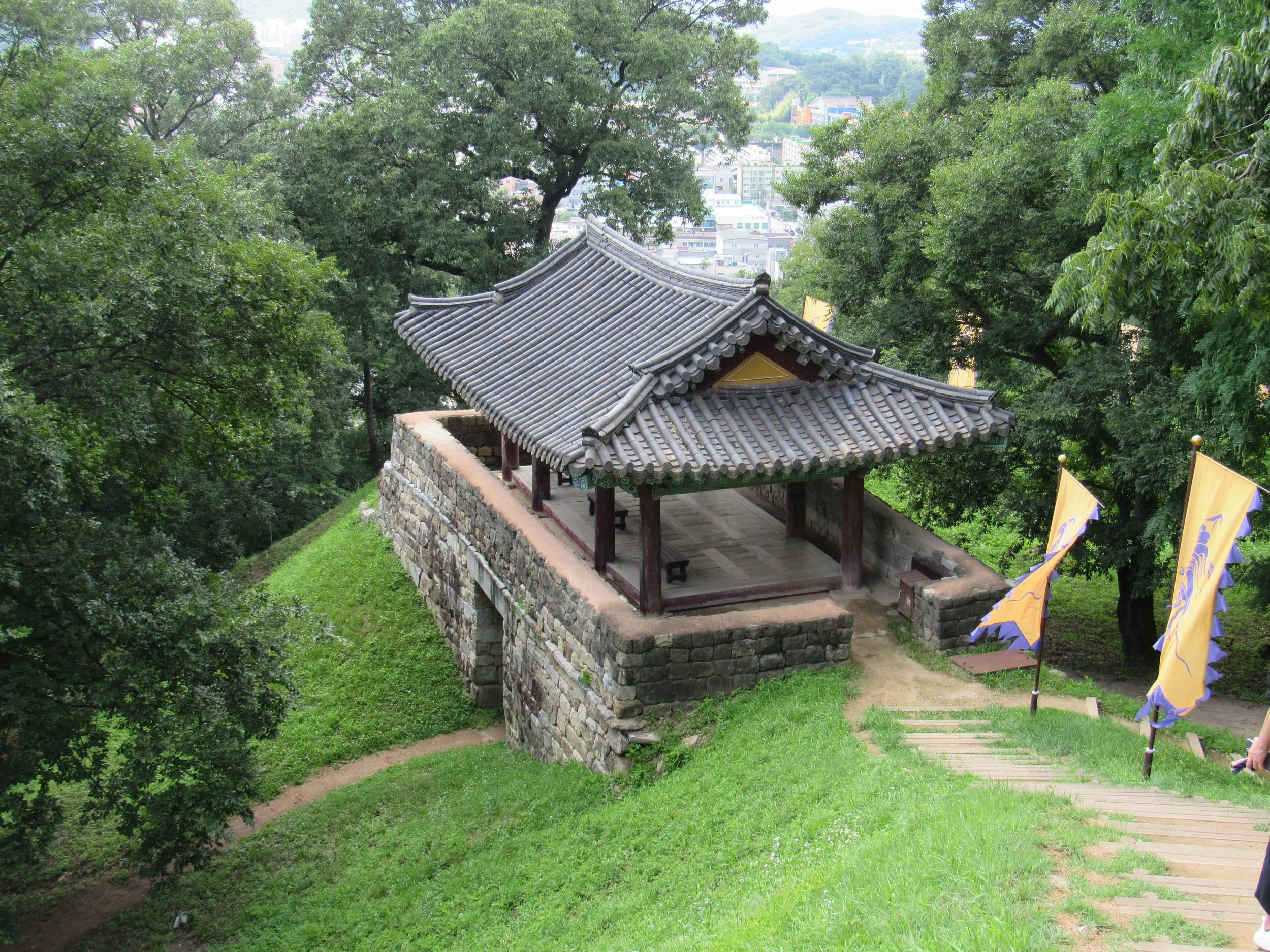 The final walk back down to Gumseoru Gate, with Gongsanjeong Pavilion above and beyond.