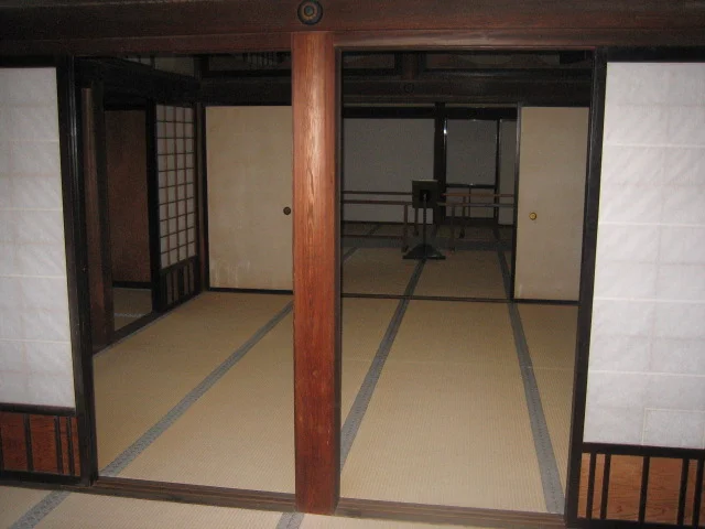 The inside of Kakegawa Castle’s palace area. Much more plainly decorated than some of the more ornate yashiki we’ve visited, but to be honest, I think I like this better! As always, the wooden floors of living spaces are covered in rice straw tatami mats and the rooms separated by sliding wood-framed paper shoji doors.