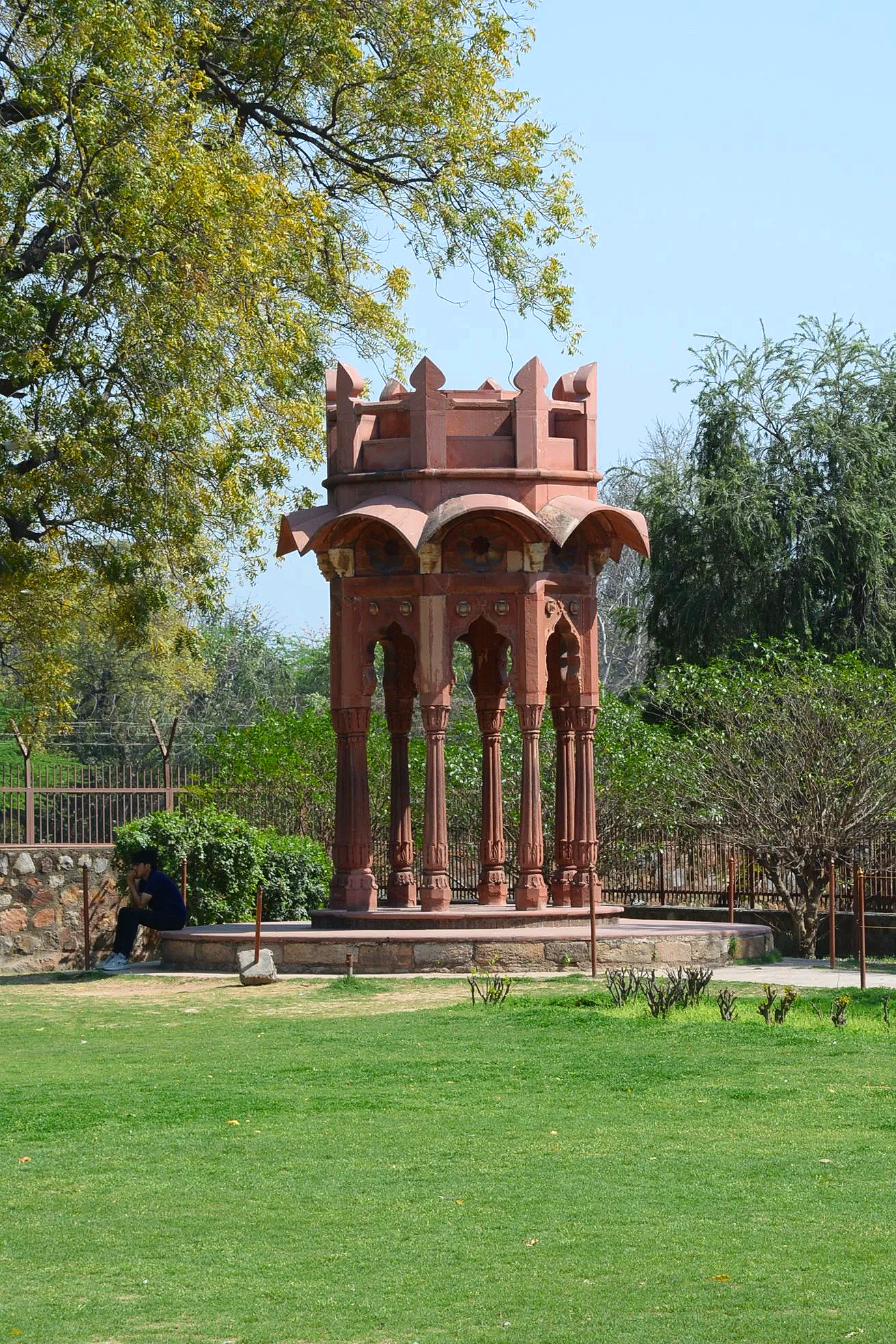This interesting piece, standing alone in a corner of the UNESCO grounds was constructed during the British Raj. Apparently British Army Major Robert Smith, ordered to make repairs to Qutb Minar following an earthquake in 1828, felt he could improve upon the medieval architecture by adding this cupola to the very top. As is often the case, the major’s overzealous act was overturned in 1848 by a senior British official who found the addition in poor taste. The cupola—from which some of the most iconic pictures of Qutab Minar can now be taken—has since become known as “Smith’s Folly”.