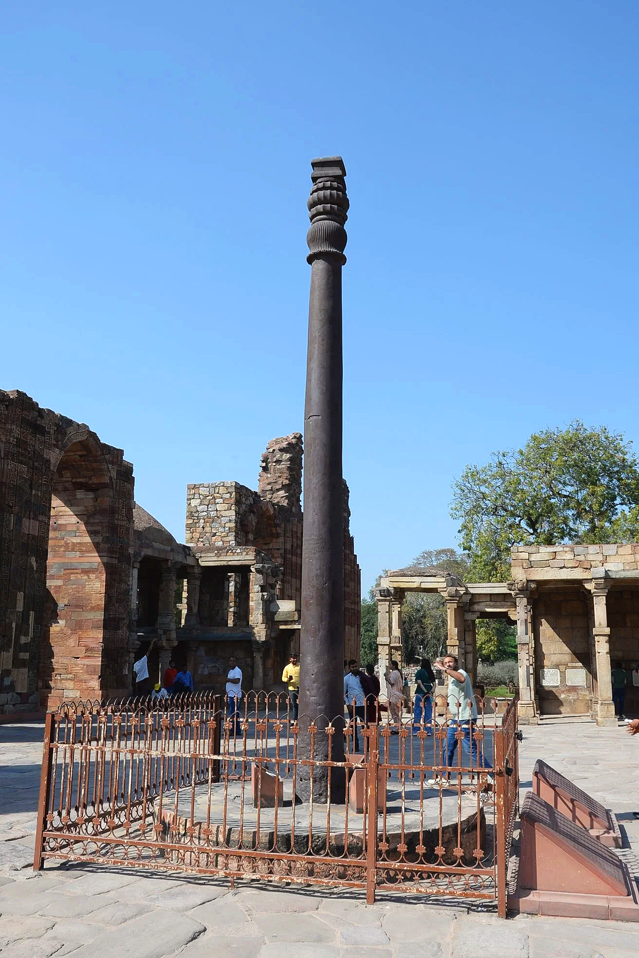 The “Iron Pillar of Delhi” is thought to have been installed on these grounds in the 11th Century though its origin is suspected to be sometime during the 4th Century AD. The iron is infused with other elements which have prevented rust, keeping it intact for over a millennium. The inscriptions on the 6-ton iron pillar are in ancient sanskrit and sing the praises of an ancient king, Chandragupta II (375-415 AD).